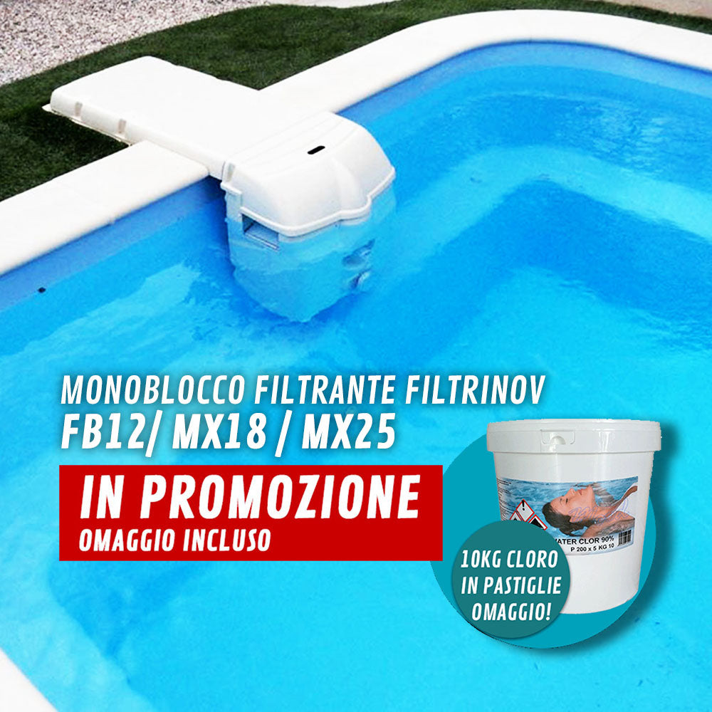 I gruppi monoblocco filtranti Filtrinov Serie FB e Serie MX ospitano, in un blocco unico, tutto il necessario per la filtrazione, la circolazione e l'illuminazione della tua piscina interrata. SCOPRI LA PROMOZIONE VALIDA FINO A FINE APRILE!